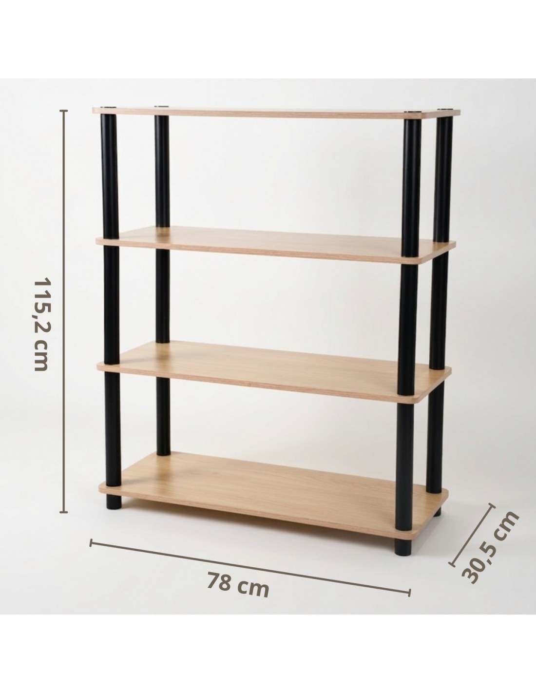 - 4 półki MDF (wymiary 78 x 30,5 x 1,2 cm).