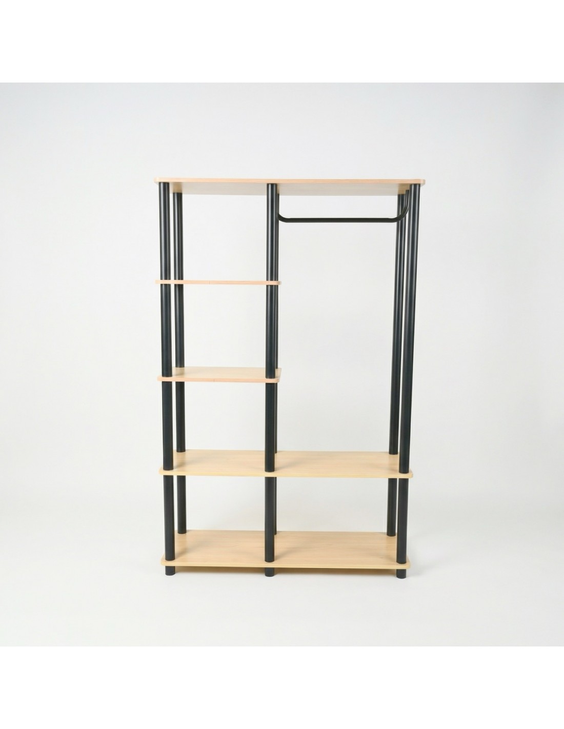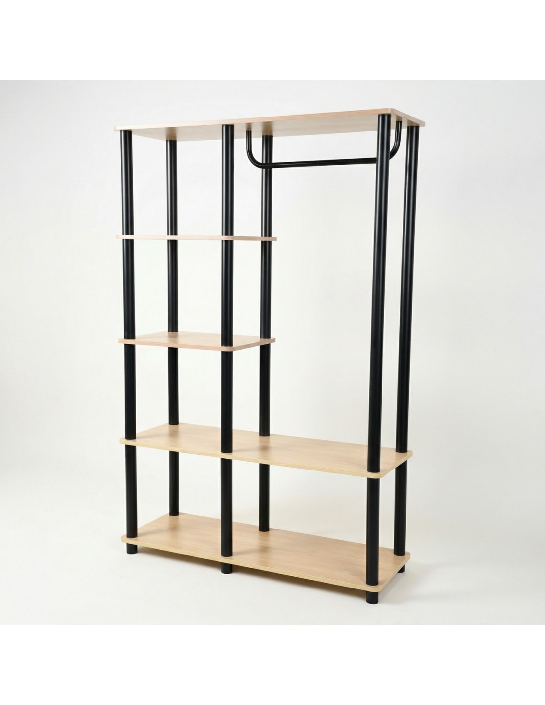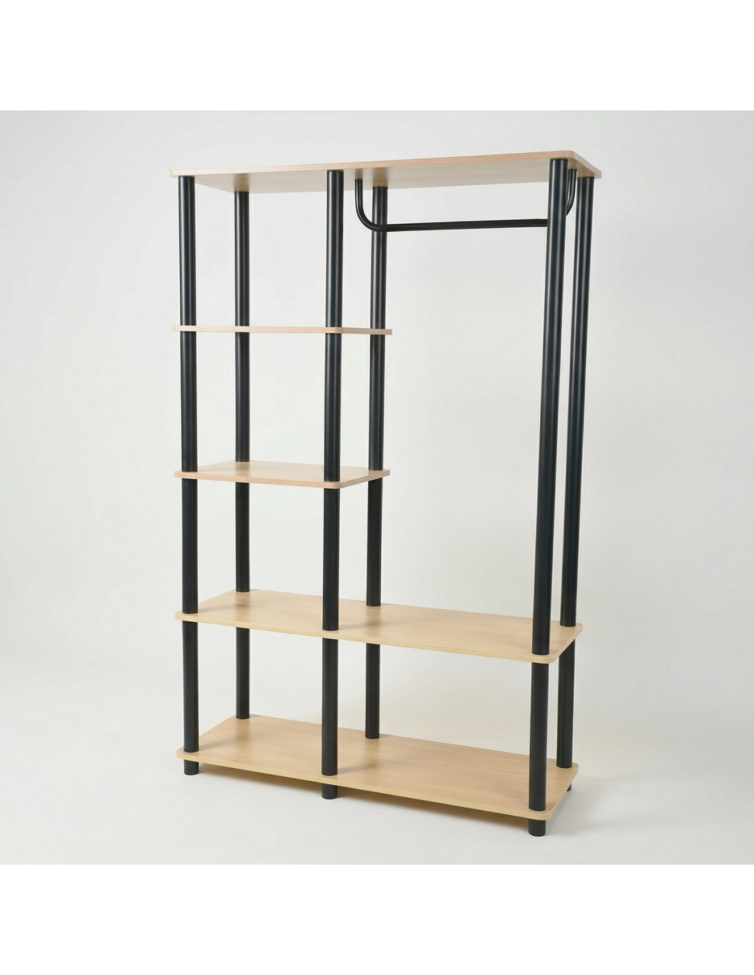 Szukasz sposobu na opanowanie chaosu w przedpokoju lub sypialni, ale masywne szafy po prostu się tam nie mieszczą? Ten model to złoty środek między otwartym regałem a klasyczną garderobą. Dzięki pionowej konstrukcji wykorzystasz każdy centymetr ściany, nie zagracając przy tym przejścia✨