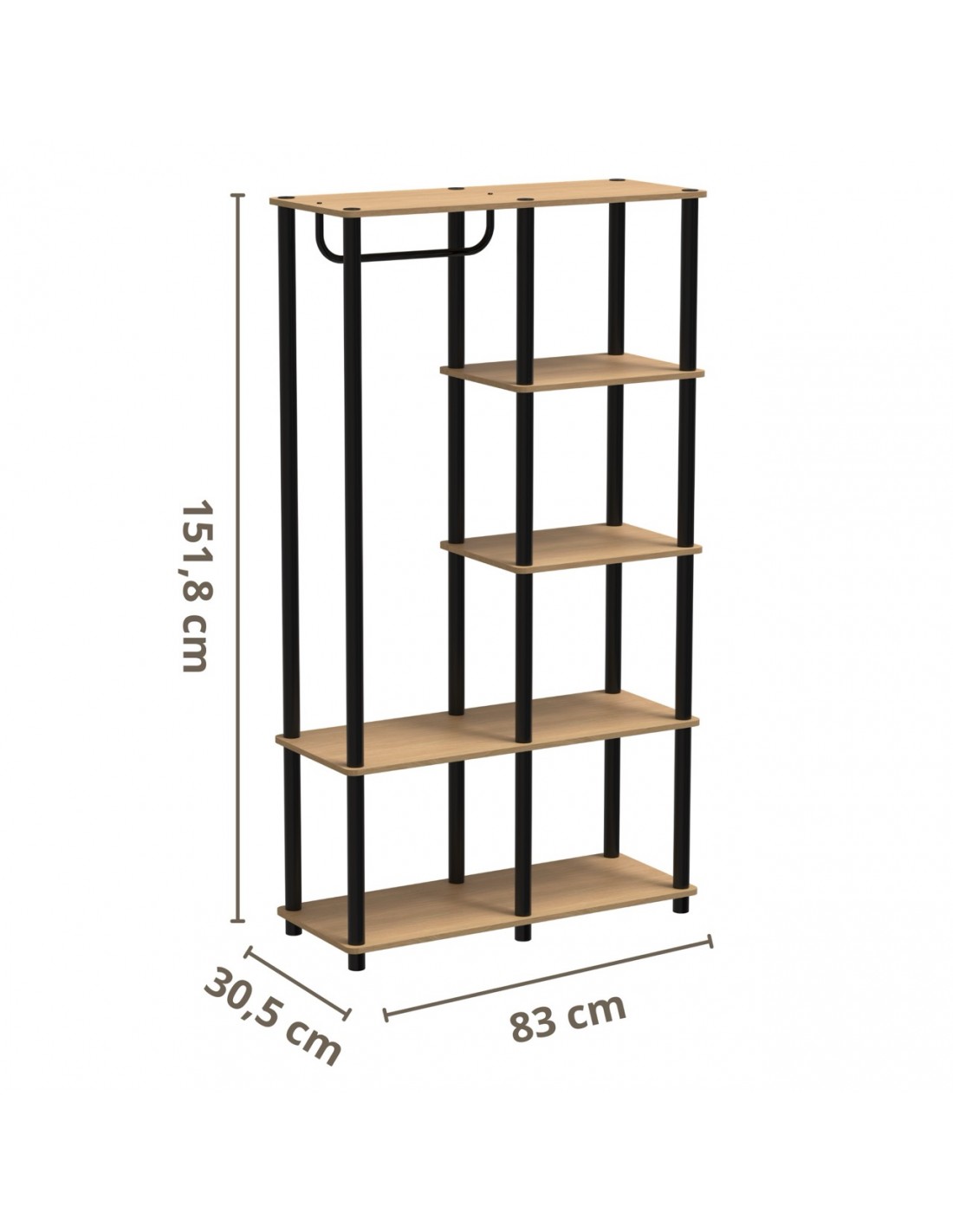 - Wymiary: 151,8 cm (wys.) x 83 cm (szer.) x 30,5 cm (gł.)