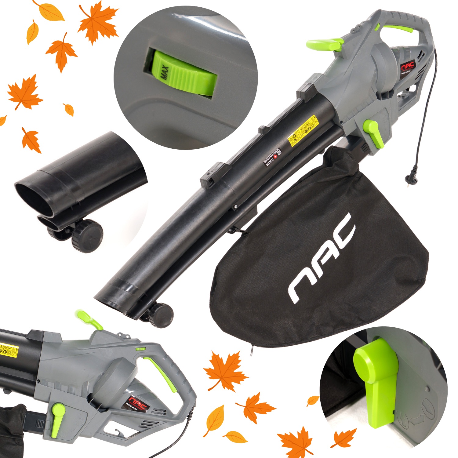 Odkurzacz elektryczny ogrodowy NAC VBE350-AS-DW z funkcją dmuchawy