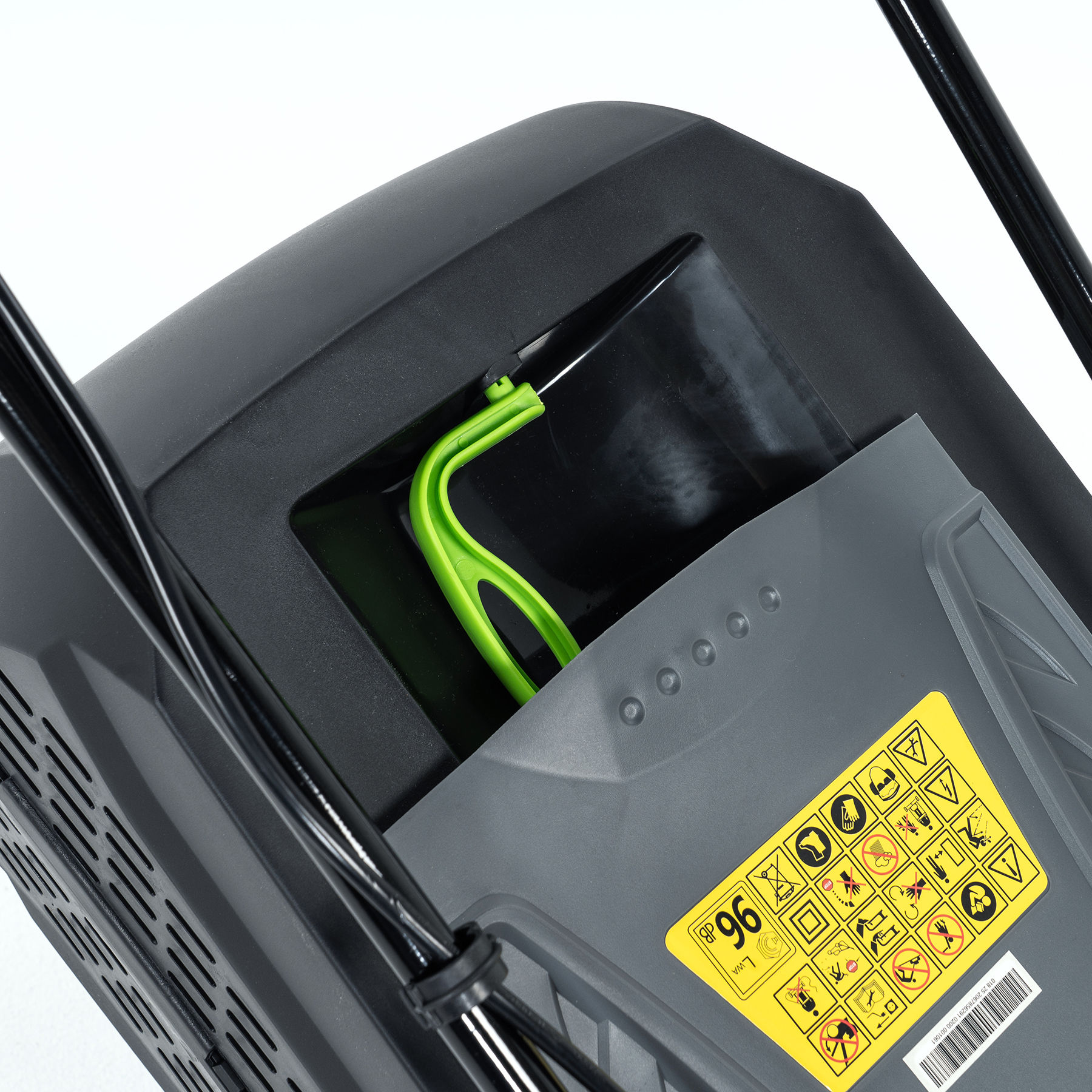 Kosiarka posiada kosz plastikowy o pojemności 35 litrów. Wygodna rączka sprawia, że opróżnianie kosza jest bezproblemowe.